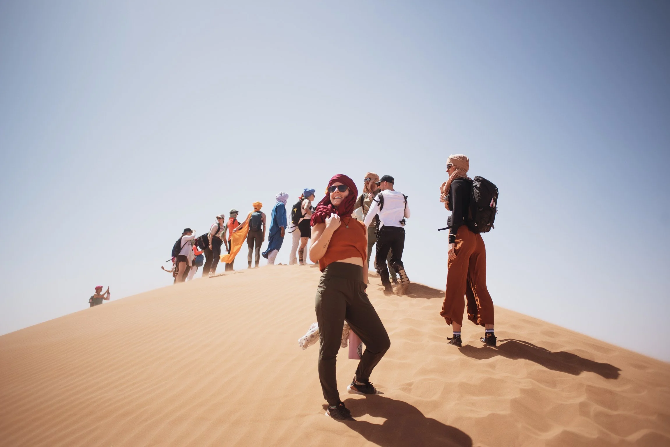 Ce séjour requiert un niveau de forme physique intermédiaire. Le trek dans le désert du Sahara est d’une durée de 3 jours consécutifs durant lesquels nous marcherons d’un point A à un point B (environ 3-4 heures de marche) en début de journée. Nous marchons parfois dans le sable ce qui peut rendre l’exercice un peu plus difficile. Mais nul besoin d’être un.e athlète pour relever ce défi sportif.